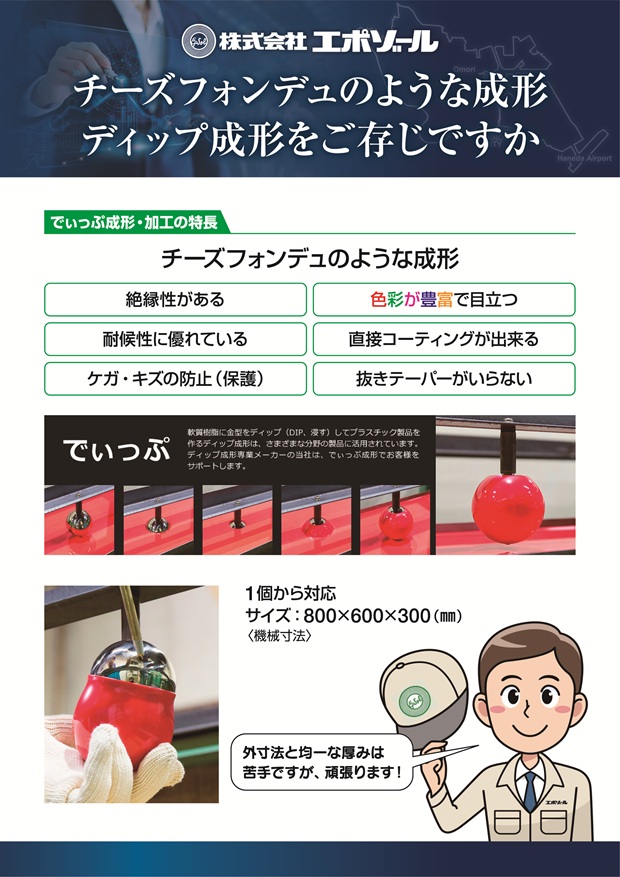 取り扱い品目:ボルトキャップ、防錆キャップ、保護キャップ、絶縁キャップ、端末キャップ、塩ビキャップ、塩ビコーティング、冶具コーティング、コーティング、塩ビゾル、ディッピング、Dipping、